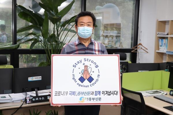 [무한뉴스] 주간 중부신문 배은식 대표이사가 국가적 위기인 코로나19 극복을 위한 응원의 메시지를 확산하는 ‘스테이 스트롱’ 캠페인에 동참했다.
