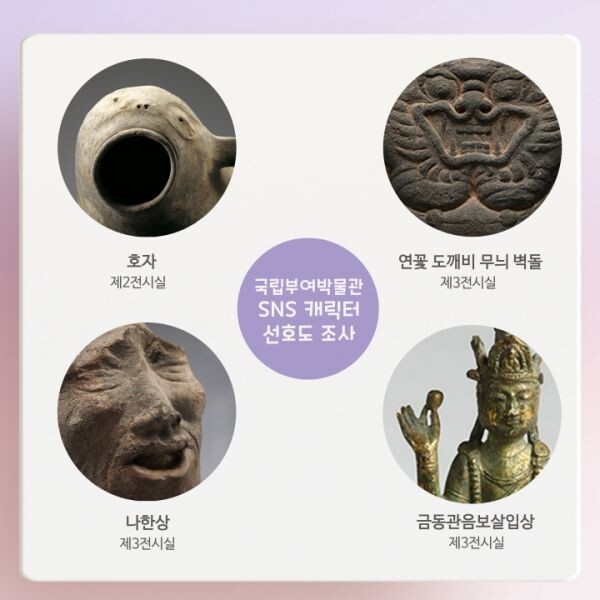 ‘SNS 캐릭터’ 선호도 조사는 국립부여박물관 인스타그램 및 누리집에서 누구나 참여 가능하다.