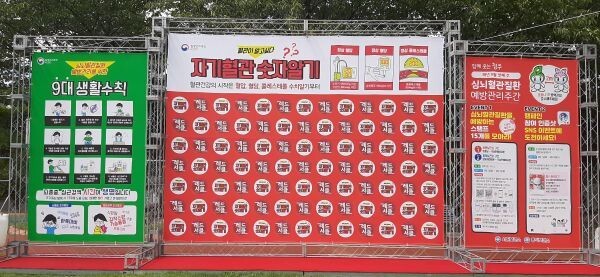 자기혈관 숫자알기의 중요성과 심뇌혈관질환 예방수칙을 배울 수 있도록 무심천 보행자도로에 바닥스티커, 현수막, 배너, 포토존을 활용했고 9월 1일부터 7일까지 누구나 원하는 시간에 참여할 수 있다.