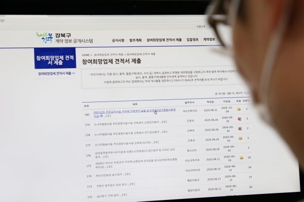 수의계약 발주 사업에 참여를 원하는 기업은 ‘강북구 계약정보공개시스템’에 접속해 견적서를 제출하면 된다.