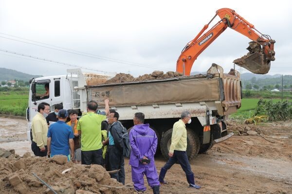 시는 집중호우 피해지역에 대한 응급복구를 위해 ‘선조치 후정산’ 방침을 정하고 15억의 예비비와 국·도비를 활용해 현장의 읍면동장 판단 하에 굴삭기, 덤프트럭 등 중장비를 최대한 동원, 응급복구에 투입했다.