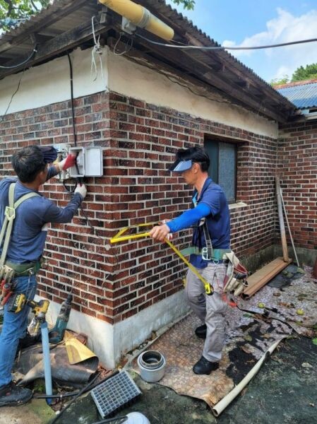 [무한뉴스] 부여군 구룡면 신화전기는 지난 6월 내산면과 외산면 어려운 가구에 전선정리 공사를 해준데 이어 8월 28일 구룡면에서도 재능기부 활동을 이어나갔다.