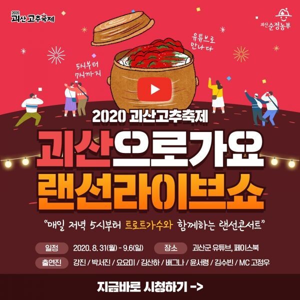 랜선라이브쇼는 괴산군 공식 유튜브와 페이스북 채널을 통해 시청할 수 있다.