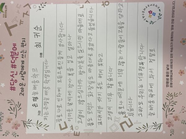 이미 은평구청장을 비롯한 관내 12개 문해교육기관장들도 손글씨 쓰기에 동참했으며 학습자 및 일반 시민들도 참여한다.