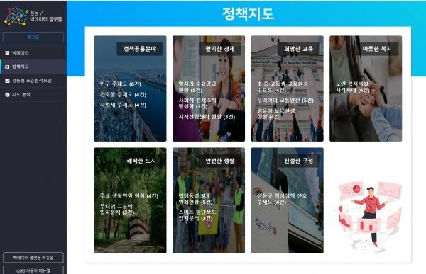 [무한뉴스] 서울 성동구가 구의 현황 빅데이터를 정책별로 한눈에 볼 수 있는 ‘빅데이터 정책지도’를 구축했다.
