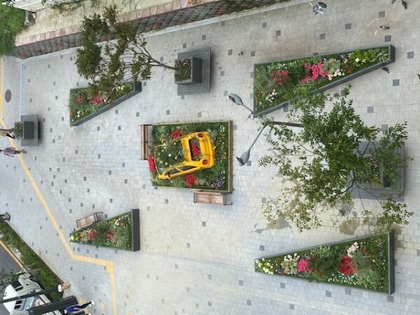 구는 금천구의 금빛 희망을 상징하는 노란색으로 폐 자동차를 도장하고 차량 지붕과 트렁크, 보닛에는 붉은 계열의 꽃나무를 식재했다.