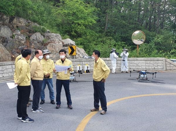 이에 군은 올 2월부터 산림녹지과장을 반장으로 하는 산림병해충 방제대책본부를 본격 가동하며 예비비 포함 8억원의 사업비를 투입해 지난해 산란 된 알집 제거와 4월부터 부화한 유충을 대상으로 드론과 분무방제, 연막방제기 등 종합 방제사업을 단계적으로 추진했다.