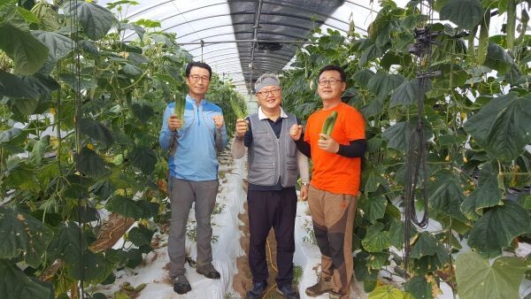 군은 천연액비제조기, 유기농업자재, 내병계오이묘를 3개 농가의 시설하우스에 시범적으로 지원했다.