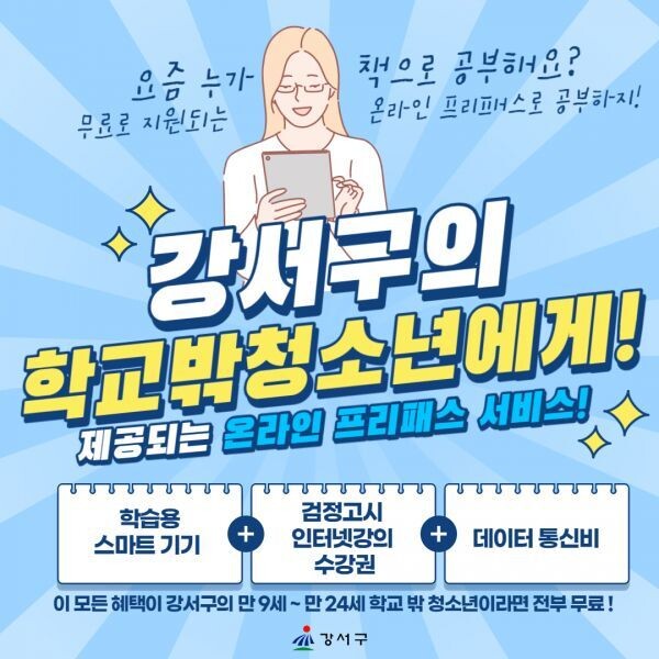 [무한뉴스] 서울 강서구는 학업 중단으로 어려움을 겪고 있는 청소년을 대상으로 ‘온라인 프리패스 학습 지원’을 추진한다고 밝혔다.