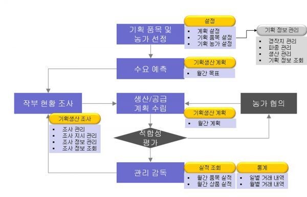 새 프로그램은 그동안 수작업으로 이뤄져 왔던 직매장과 학교급식 출하농가 정보, 생산량, 출하량, 품목관리 등을 완전 전산화한 것으로 직매장통합관리시스템과 연동된다.