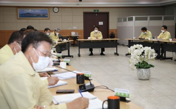 [무한뉴스] 한범덕 청주시장이 7일 시청 대회의실에서 열린 주간업무 보고회에서 코로나19 확산 방지를 위해 추석 연휴 친지 방문과 성묘를 자제해 줄 것을 호소했다.