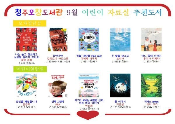 [무한뉴스] 청주오창도서관이 아동을 대상으로 한 이달의 추천도서로 ‘청렴도서’ 1권과‘아동 신간도서’ 9권을 포함한 총 10권을 선정했다.