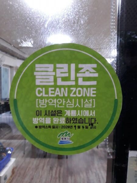 [무한뉴스] 계룡시 보건소는 코로나19 확진자 방문 업소에 대해 방역 완료를 표시해주는 ‘클린존’ 인증 사업을 시행중이라고 밝혔다.