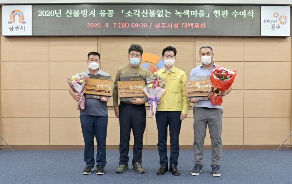 이번에 선정된 마을은 유구읍 녹천1리 마을과 탄천면 장선2리 마을, 반포면 상신리 마을로 시는 이들 마을에 소각산불 없는 녹색마을 현판을 수여했다.