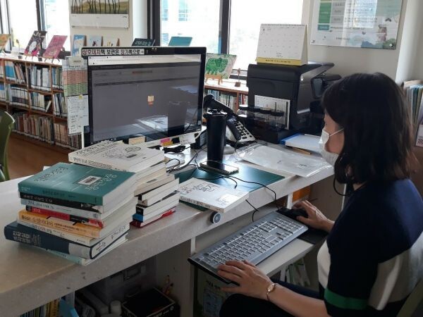 [무한뉴스] 청주시 공원관리과가 코로나19 사회적 거리두기 2단계 시행에 따라 양서류 생태문화관은 임시휴관 중이지만 생태작은도서관을 이용하는 시민들을 위해 장서정리를 추진하고 있다.