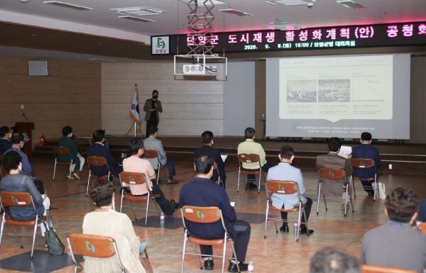 이날 공청회는 단양읍 상상의 거리 일원 도시재생 활성화 계획에 대한 지역 주민과 전문가의 다양한 의견을 수렴하기 위해 마련됐으며 코로나19 사회적 거리두기에 따른 방역수칙을 준수하며 진행했다.