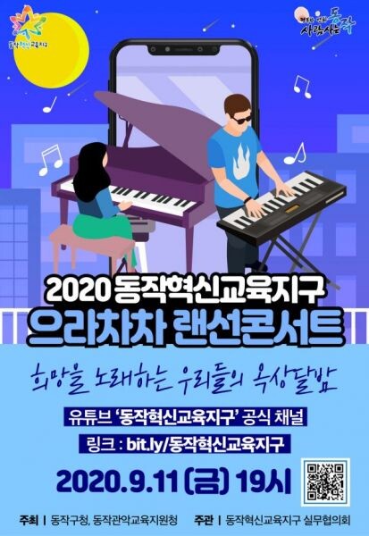 [무한뉴스] 동작구가 동작혁신교육지구 6주년 축하 및 코로나19로 지친 주민들에게 활력을 선물하고자 오는 11일 ‘2020 으라차차 랜선콘서트’를 진행한다고 9일 밝혔다.