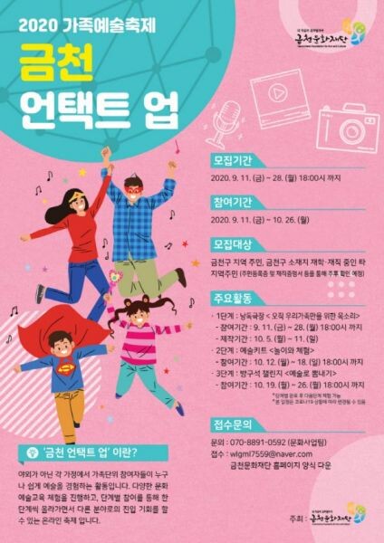 [무한뉴스] 금천문화재단이 가족단위 주민들이 함께 즐길 수 있는 2020 가족예술축제 ‘금천 언택트 업’을 오는 9월 11일부터 10월 26일까지 개최한다.