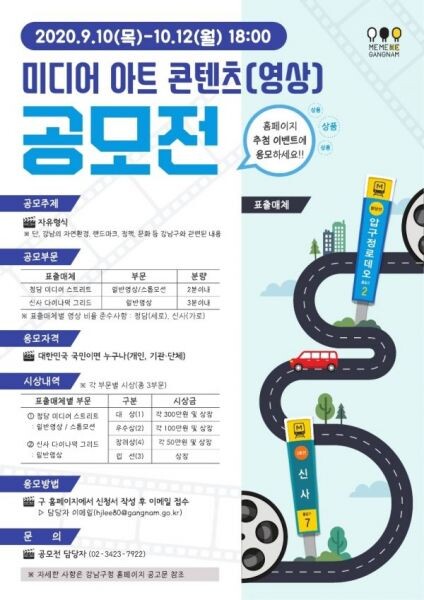 공모주제는 랜드마크나 문화, 정책 등 강남구와 관련한 모든 것이며 장르불문 일반영상, 애니메이션, 스톱모션 등의 다양한 표현 기법이 사용된 직접 만든 미디어 콘텐츠면 누구나 지원할 수 있다.