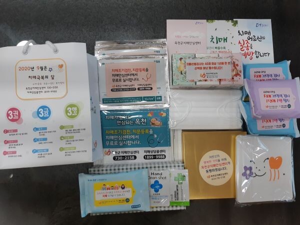9월 한 달 간 치매선별검사를 받은 대상자에게 ‘치매극복 코로나극복 옥천행복’이라는 슬로건으로 방역키트를 포함한 다양한 ‘복‘꾸러미’를 제공한다.