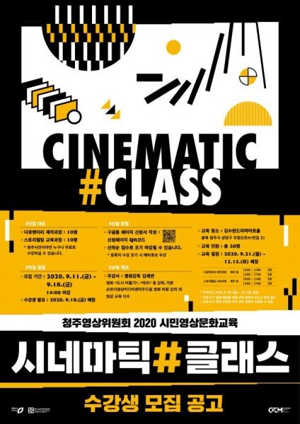 [무한뉴스] 영상문화도시 청주를 구현하는 청주시문화산업진흥재단 청주영상위원회가 오는 18일 오후 2시까지 2020 시민영상문화교육 ‘시네마틱#클래스’ 수강생을 모집하고 있다.