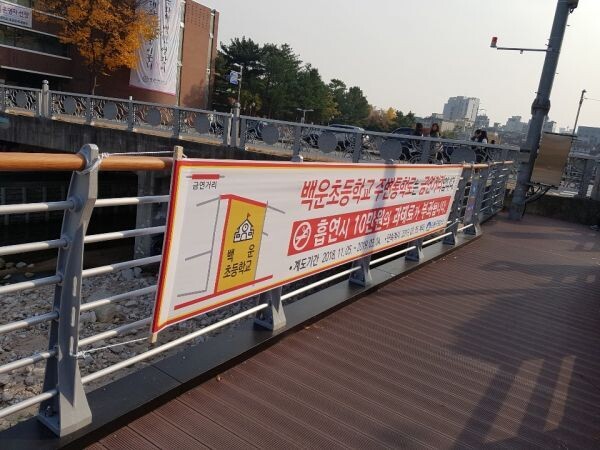 구는 먼저 기존에 금연구역으로 관리하고 있는 초등학교 교육환경절대보호구역의 금연구역 표지판 정비 후, 통학로 금연거리 안내표지를 추가로 설치해 초등학교 통학로의 금연환경을 조성할 예정이다.