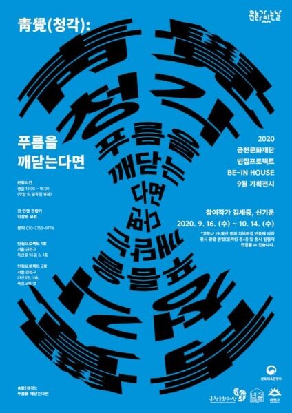 먼저 신기운, 김세중 작가의 2인 기획전시 ‘靑覺 : 푸름을 깨닫는다면’은 영상, 설치, 평면 등 다양한 매체를 통해 관객들에게 예술적 사유의 시간을 제공한다.