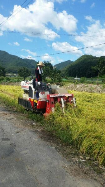 김 씨는 이날 안내면 현리 418-2번지의 논에서 콤바인을 이용해 조생 품종인‘고시히카리’벼 2t을 수확했다.