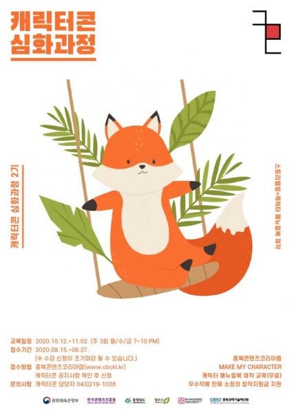 코로나19 방역지침을 철저히 준수하며 진행할 이번 ‘캐릭터콘 심화과정 ? 평일 저녁반’참가 희망자는 오는 27일까지 충북콘텐츠코리아랩 홈페이지에서 신청할 수 있으며 더 자세한 내용은 전화 043)219-1028로 확인하면 된다.