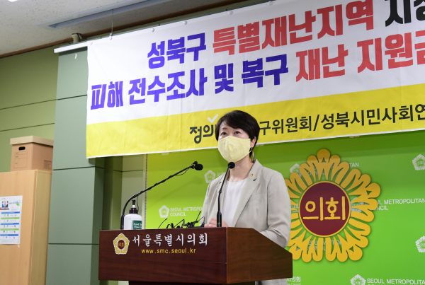 [무한뉴스] 서울시의회 보건복지위원회 권수정 의원은 14일 10시 서울시의회 본관 기자회견실에서 성북구 특별재난지역 지정 요청및 피해 전수조사 및 복구 재난 지원금을 촉구하는 자리에 함께했다.