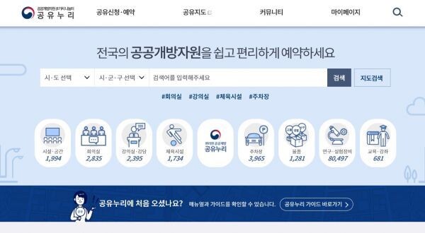 그러나 ‘공유누리’가 구축되면서 전국 공공기관이 보유한 공공개방자원을 통합포털 한 곳에서 검색부터 사용 예약까지 할 수 있게 됐다.