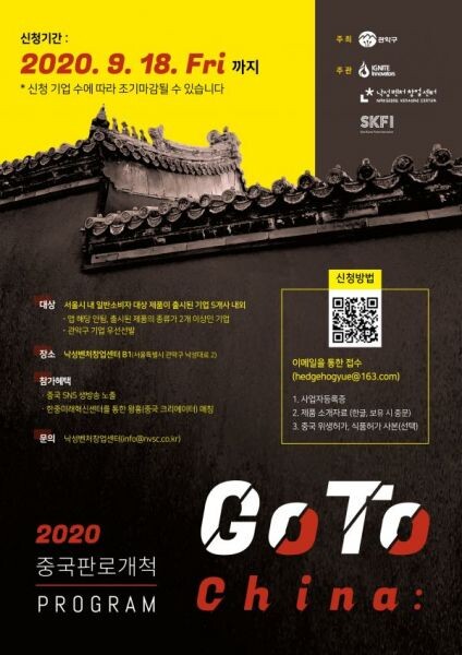 [무한뉴스] 관악구 낙성벤처창업센터가 ‘Go To China : 중국 판로개척 프로그램’에 참여할 스타트업 기업을 모집한다.