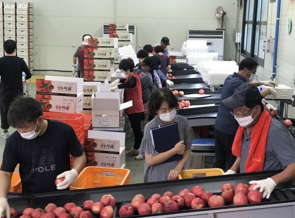올해는 역대 최장 장마와 연속된 태풍 피해로 다소 수확량은 감소가 예상 되고 있으나 단고을조합공동사업법인을 통해 안정적으로 출하하는 사과의 물량은 오히려 전년대비 121%정도 증가해 400톤 정도를 취급할 것으로 기대하고 있다.
