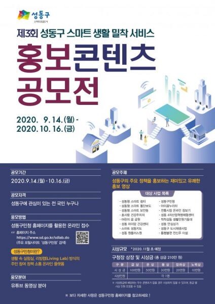 [무한뉴스] 서울 성동구가 ‘제3회 성동구 스마트 생활밀착 서비스 홍보 콘텐츠 공모전’을 개최한다.