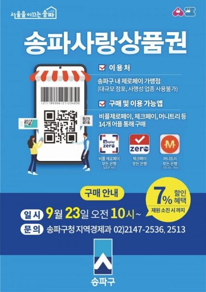 이번 송파사랑상품권은 7% 할인된 금액으로 총 80억원이 발행된다.