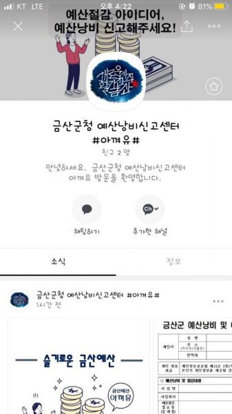 이를 개선해 많은 사람들이 이용하는 카카오톡을 활용해 접근성과 편리성을 강화, 주민 누구나 쉽고 간편하게 예산낭비 및 절감에 대한 아이디어를 접수하고자 채널을 운영을 시작했다.
