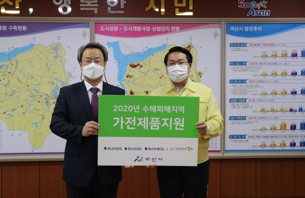 [무한뉴스] 월드휴먼브리지 아산지역본부가 17일 아산시를 방문해 집중호우로 피해를 입은 주민 및 저소득층 지원을 위해 700만원 상당 세탁기 14대를 전달했다.