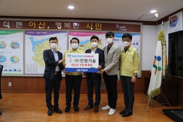 [무한뉴스] ㈜진영기술가 17일 아산시를 방문해 코로나19 예방 및 확산방지를 위해 자체 제작한 마스크 1만매를 기부했다.