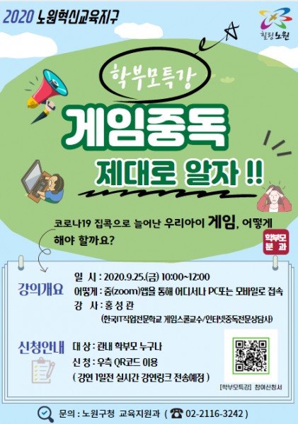 오승록 노원구청장은 “게임이 일상이 되어버린 우리 아이들에 대한 학부모들의 걱정을 깊이 공감해 마련한 이번 강의에서 학부모들이 자녀들의 게임 중독에 대한 올바른 이해를 통해 자녀와의 관계 개선 향상에 도움이 될 수 있기를 바란다”고 밝혔다.
