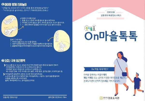 이번 ‘On 마을 톡톡’은 천호도서관만의 특성화 재확립을 위해 공동육아와 관련된 행사안내와 지역 내 육아소식 등 공동육아를 주제로 다양한 정보를 제공한다.
