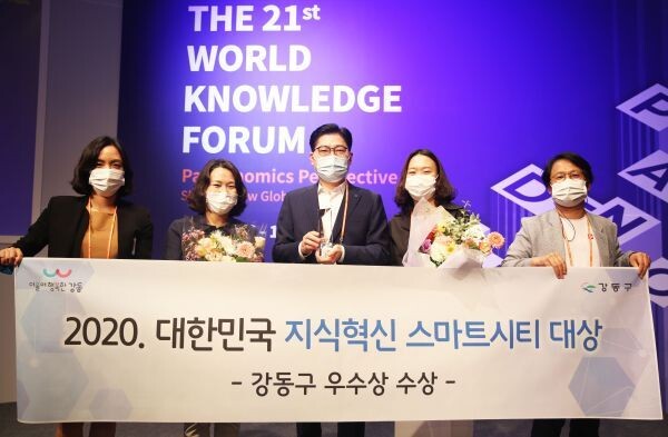 [무한뉴스] 강동구가 지난 18일 제21회 세계지식포럼에서 ‘2020 대한민국 지식혁신 스마트시티 대상’ 우수상을 수상했다고 밝혔다.