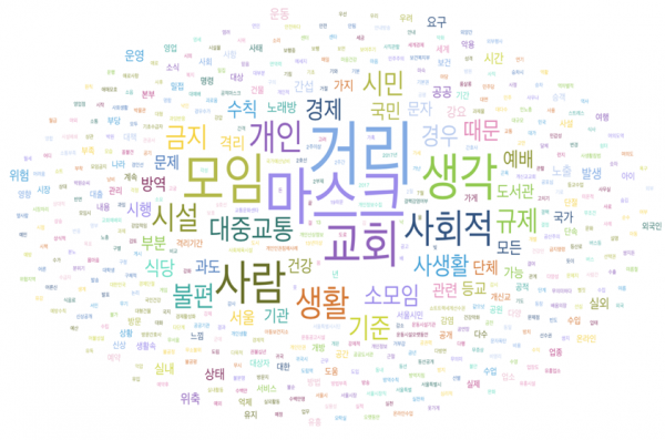 심한 고립감, 다소 고립감을 느낀 응답자들은 개인정보 수집, 경제 단절, 코로나19 치료비용으로 국민의 세금 사용, 사생활 노출, 공적마스크 부족, 마스크 착용으로부터 오는 답답함, 대중교통 문제, 과도한 제약, 지나친 교회 예배 단속, 특정 업종의 과도한 규 제 등을 지나친 점으로 응답했다.