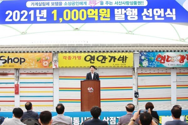 맹정호 서산시장은 “정체된 지역경제를 살리는 데 서산사랑상품권이 마중물 역할을 톡톡히 하고 있다”며 “앞으로도 소상공인과 지역경제 살리기에 온 행정력을 총동원하겠다”고 말했다.