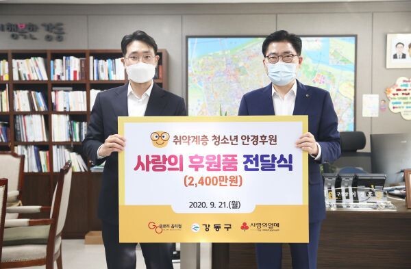 코로나19 확산과 침체된 경제 상황 속에 시력 관리가 쉽지 않은 취약계층 청소년들의 눈 건강을 보호하기 위해 글로리 안경원 성내점이 2천 4백만원 상당의 시력교정 안경을 강동구에 지원하기로 했다.