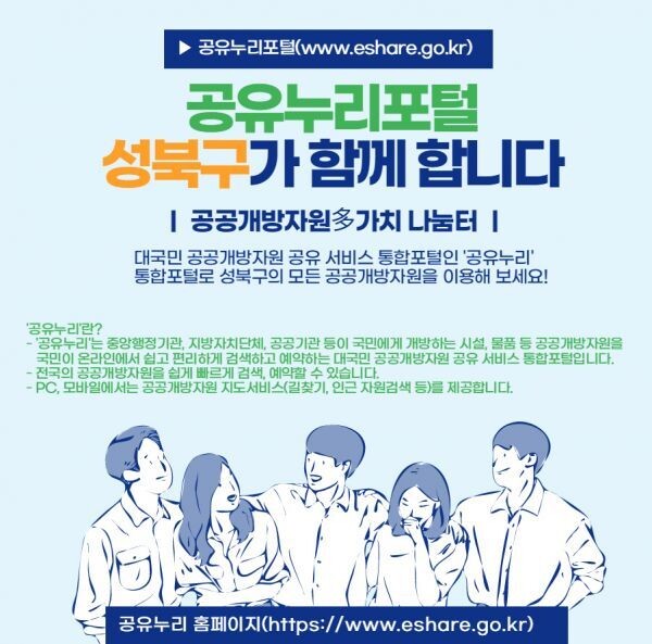 [무한뉴스] 성북구가 ‘공유누리포털’을 적극 활용해 구민들이 더욱 쉽게 성북구 공유자원에 접근할 수 있도록 한다.