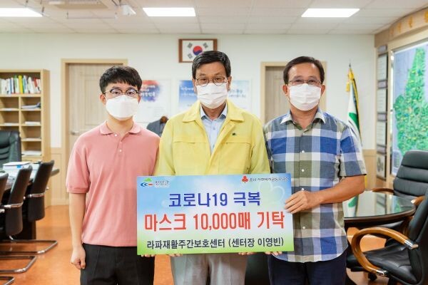 청양읍 소재 라파재활주간보호센터는 21일 군을 방문해 코로나19 감염 예방을 위한 마스크 1만 매를 기탁했다.