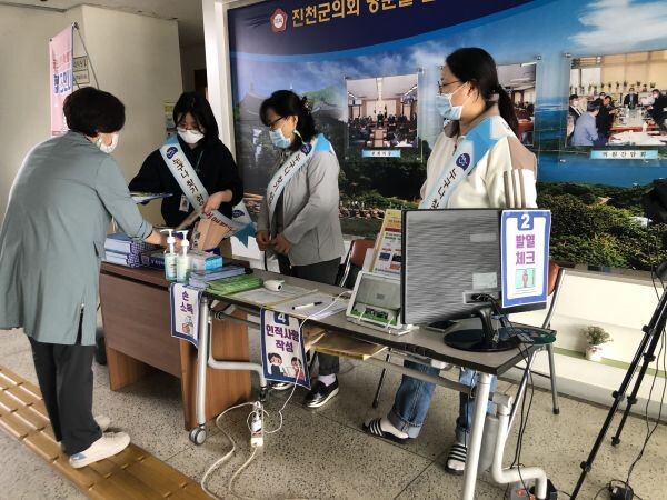 군은 지난 21일부터 오는 29일까지 청사 출입구 3개소에서 민원인들의 적극적인 발열체크 협조를 구하면서 진천군 도로명주소 안내지도와 홍보용품 마스크 목걸이 2,000개 배부하고 있다.