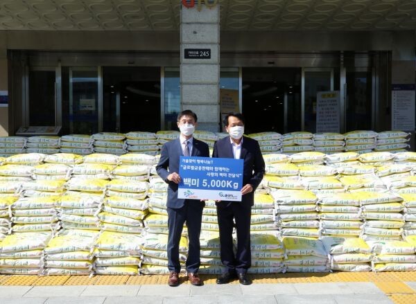 글로벌금융판매가 22일 백미 10kg 500포를 구로구 관내 사회복지시설, 저소득층 가정에 후원했다.
