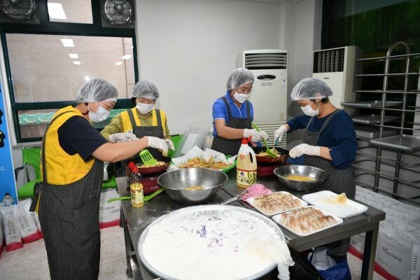 장수기원 명절음식 및 응원키트는 국수, 모듬전, 편백안마봉, 응원편지 등으로 구성됐으며 자원봉사자 40명이 코로나19 방역수칙을 준수한 가운데 준비됐다.