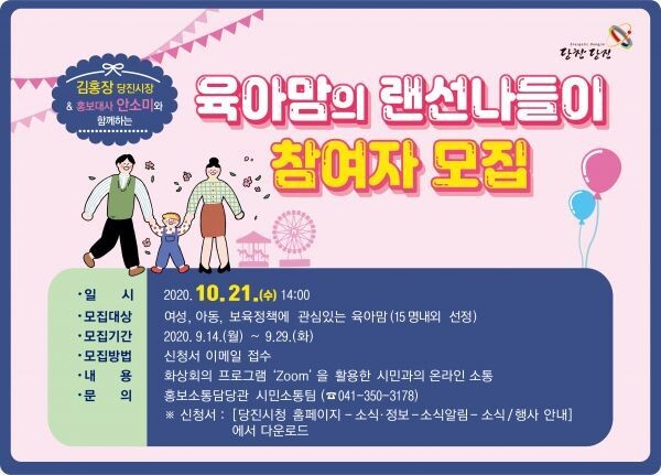 [무한뉴스] 당진시가 오는 10월 21일 오후 2시에 열리는 온라인 시민소통 행사 ‘육아맘의 랜선 나들이’ 참가자를 모집한다.